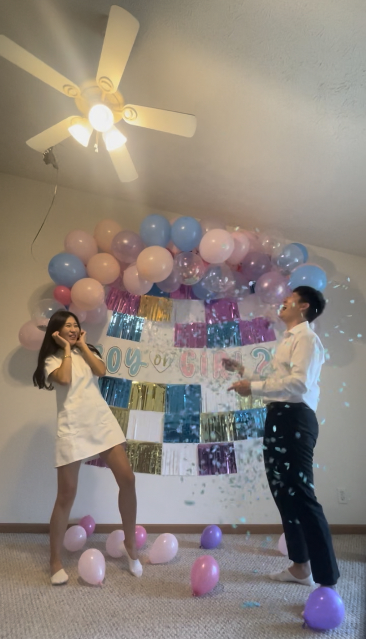이제 파티를 위해서 남편이랑 나는 옷을 갈아입고 본격적인 젠더리빌을 준비했다💕