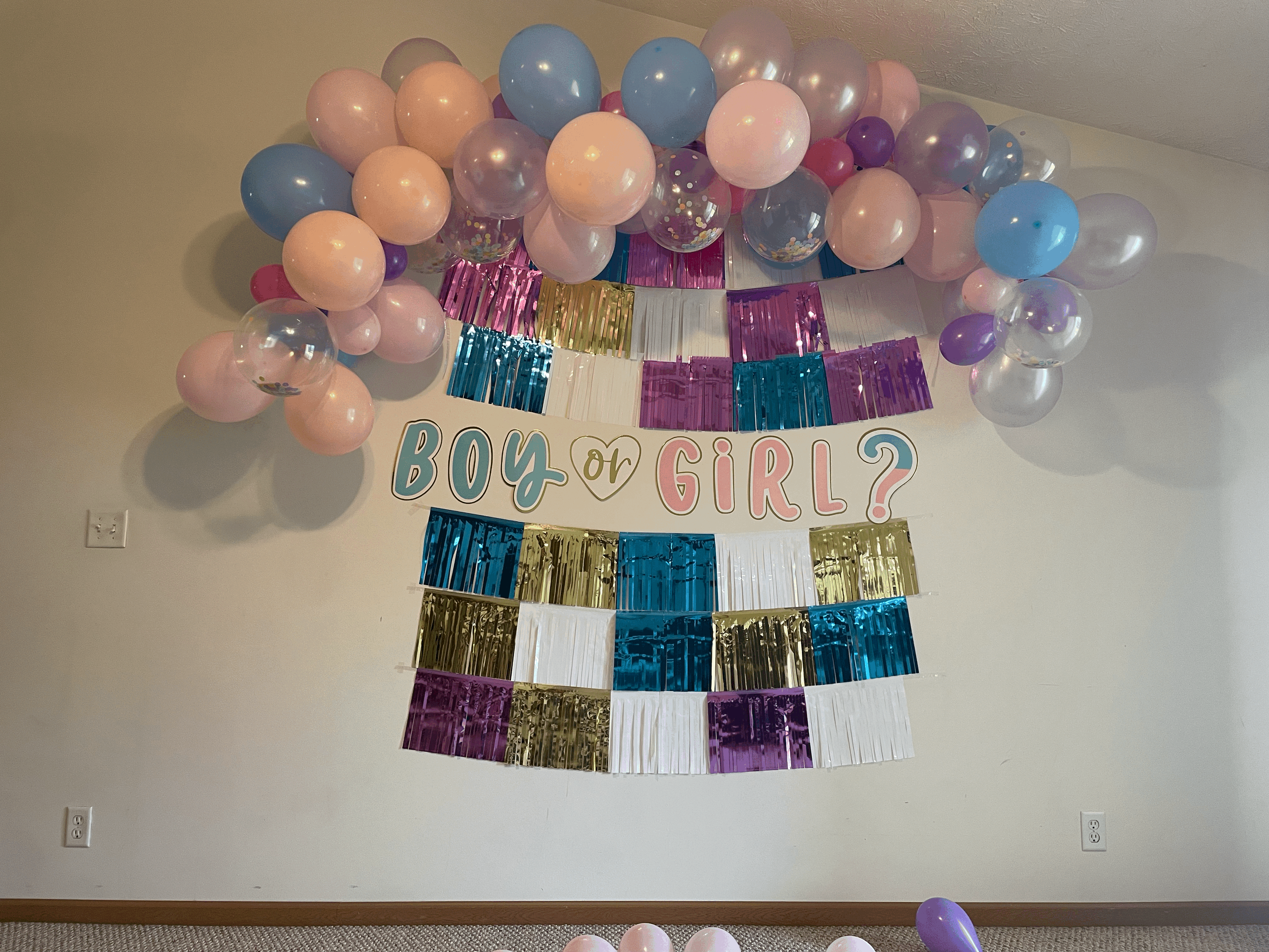 풍선을 다 준비하고, 데코레이션 베너와 Boy or Girld 베너를 붙여서 벽을 꾸며주었다.